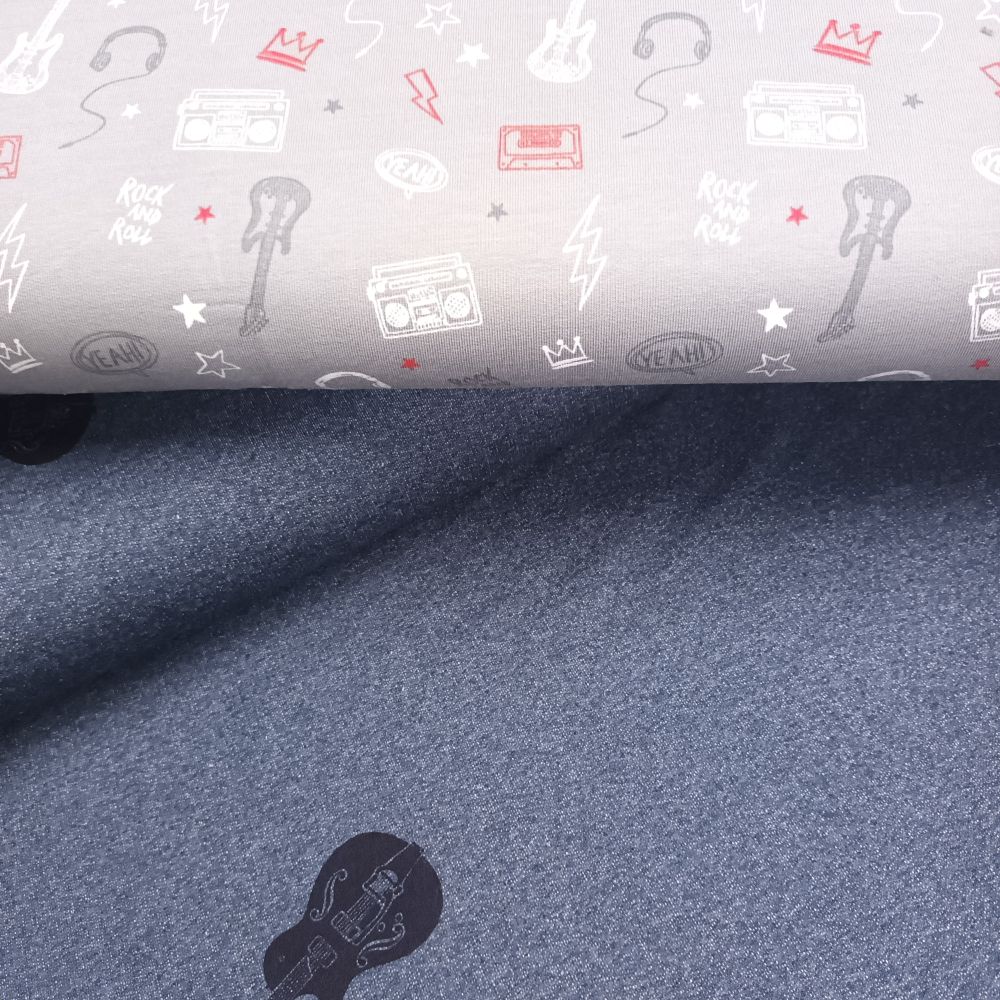 Kanga ühes servas on Rock and Roll tekstiga pildid, ülejäänud kangal on hajusalt kitarri pildid.