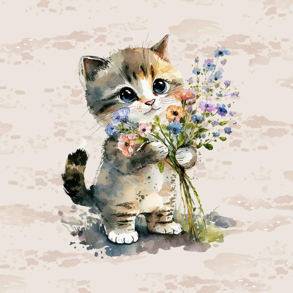 Dressikangast paneel, 40×50 cm, kassipoeg lilledega