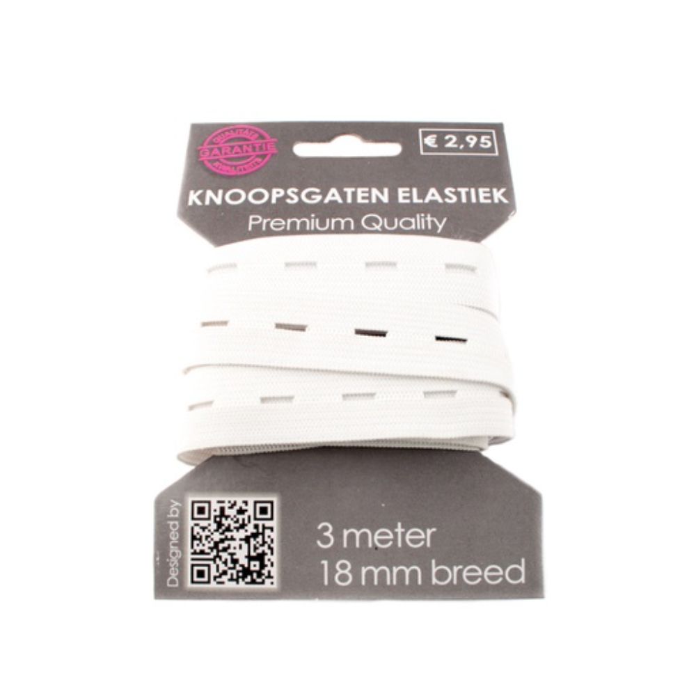 Pesukumm nööpaukudega, valge, laius 18 mm, pakis 3 m.