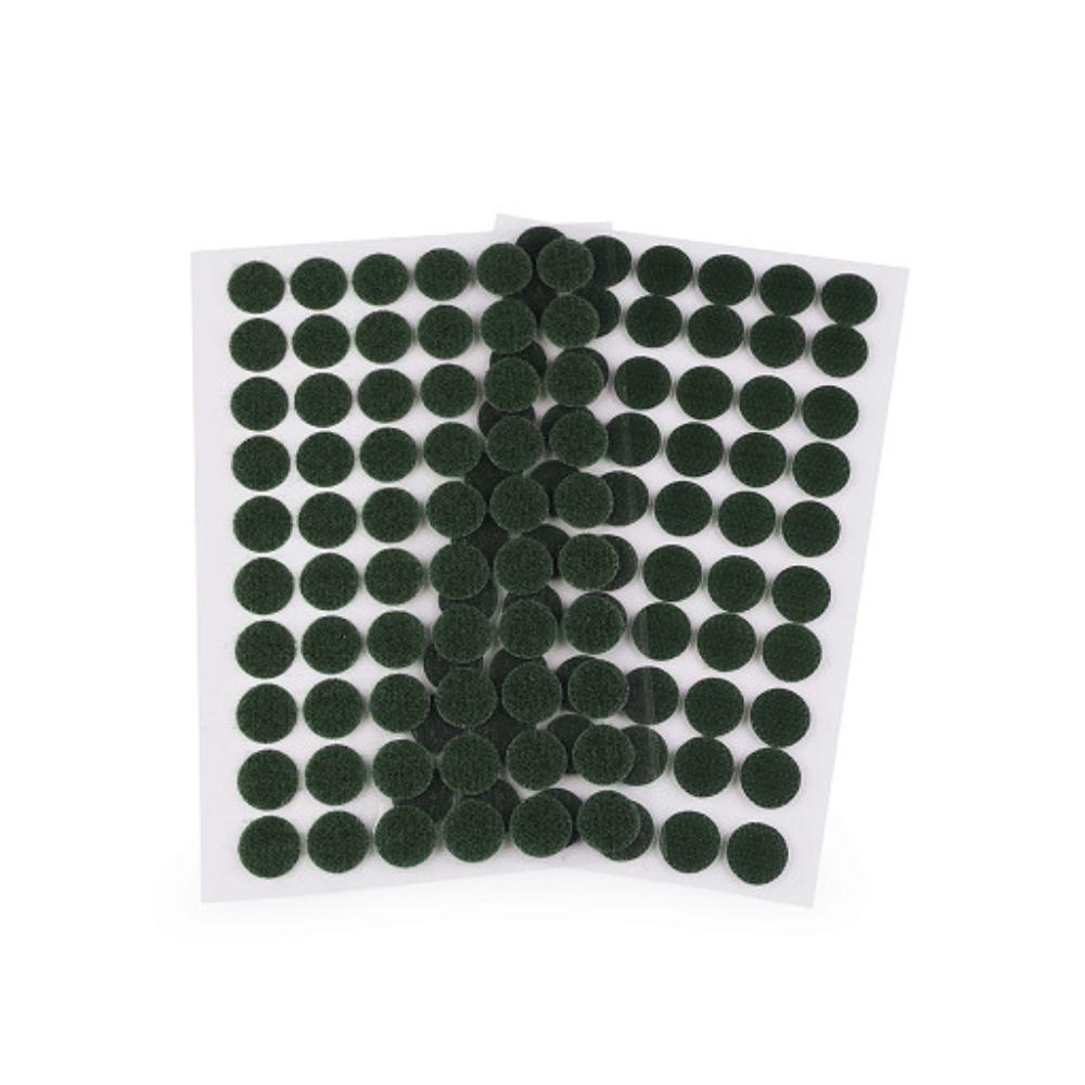 Liimitav takjakinnitus, ühe kinnituse läbimõõt on 15 mm, pakis on 60 kinnitust, mõlemad pooled on kangale liimitavad.