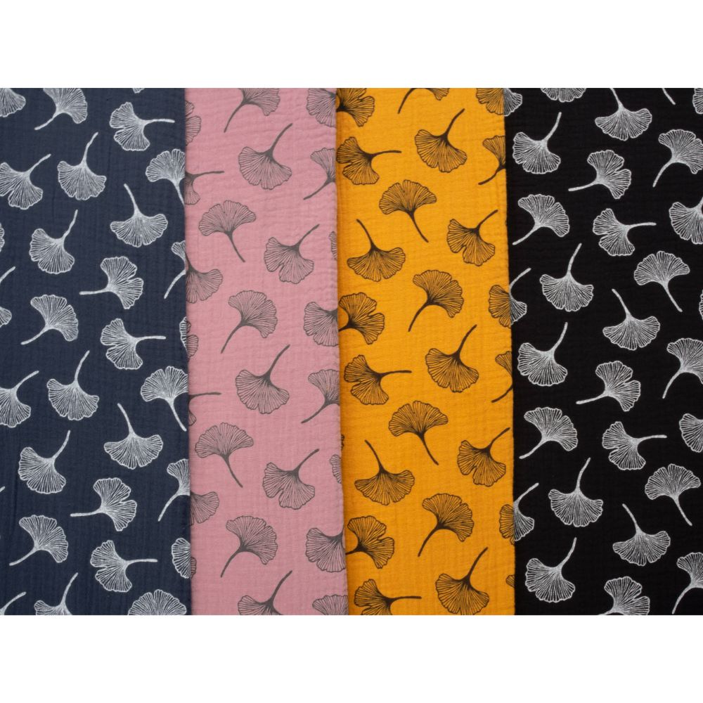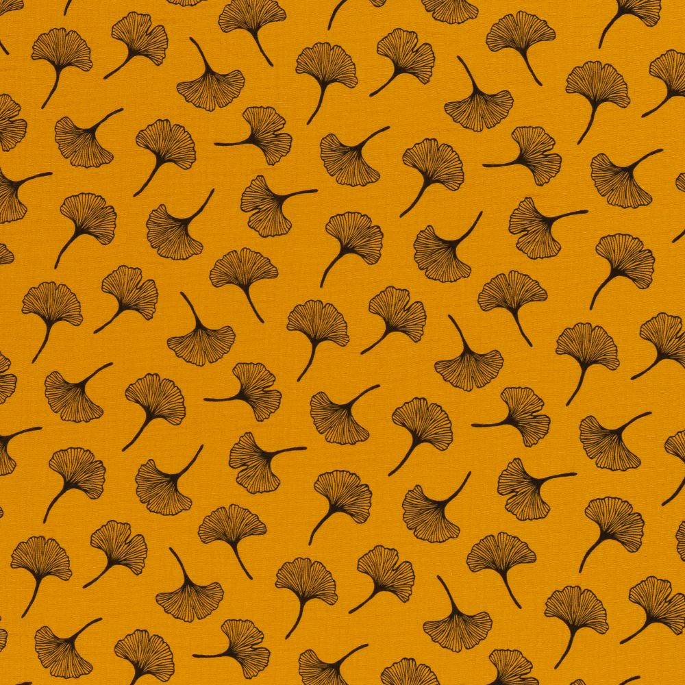 Musliin – 2-kihiline, Ginko lehtedega, sinepikollane/must