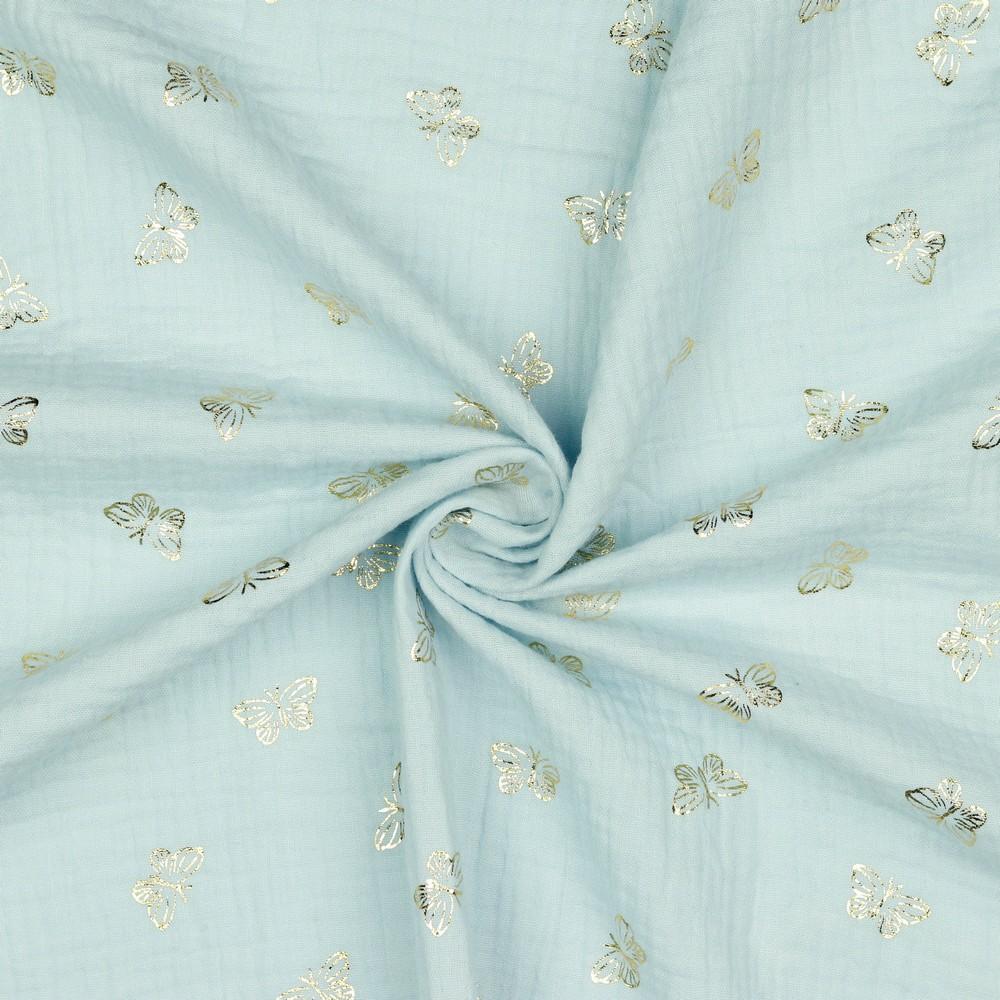 Musliin – 2-kihiline, kuldsete liblikatega, helesinine