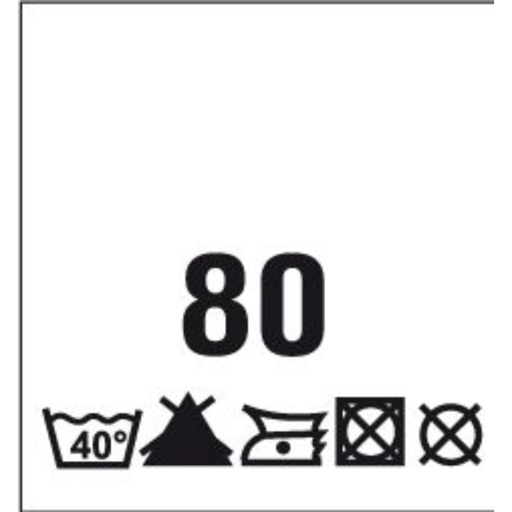 Õmmeldav suurusesilt hooldusjuhistega, 200 tk, suurus 80