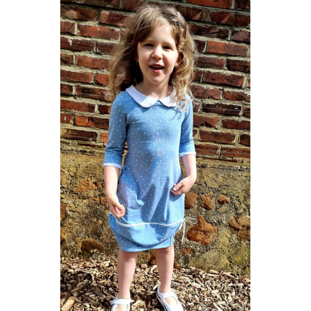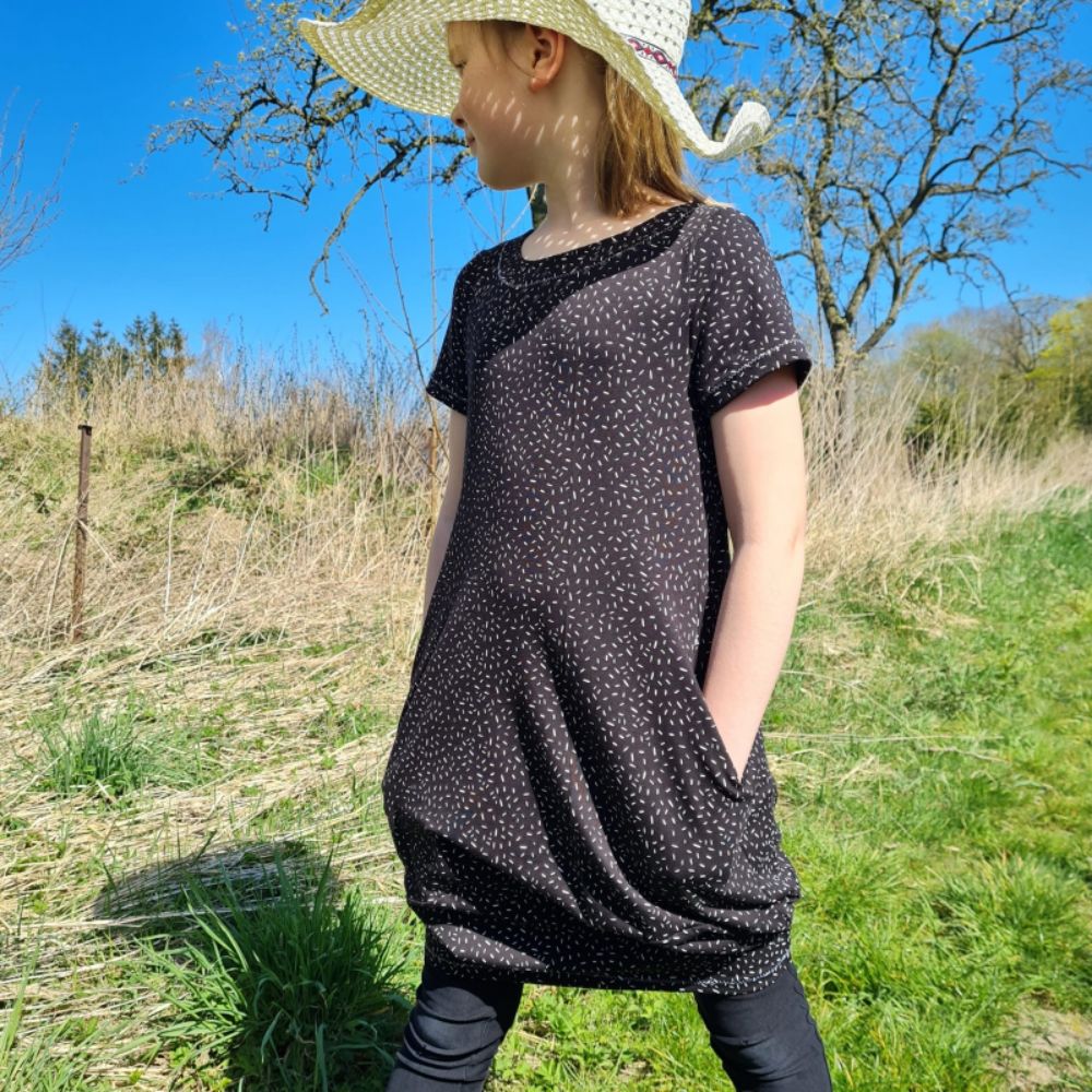 Kangasoovitus: Muster sobib kõige paremini kõikidele venivatele kangastele. Olenevalt materjali tugevusest saad sellega kleidi kuju muuta.