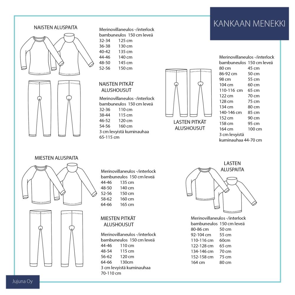 Lõiked on mõeldud peamiselt just meriinovillasest interlockist või meriinovillasest trikotaažist sooja aluspesu õmblemiseks.