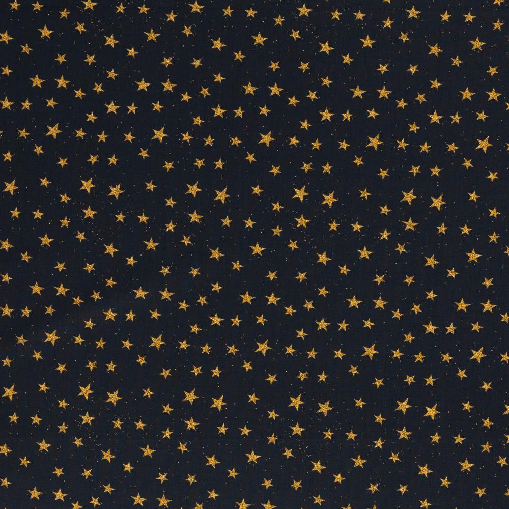 Puuvillapopliin, kuldsed tähed mustal