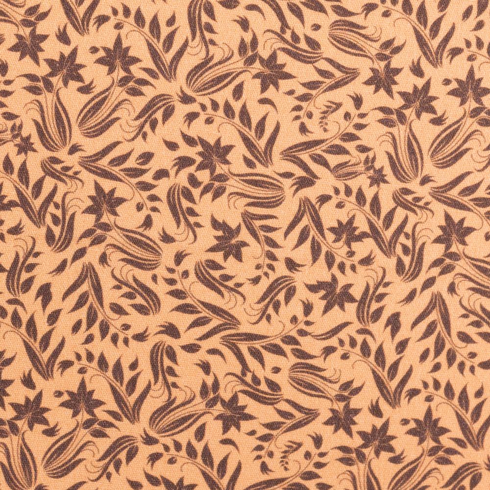Puuvillapopliin, pruunid lilled aprikoosioranžil
