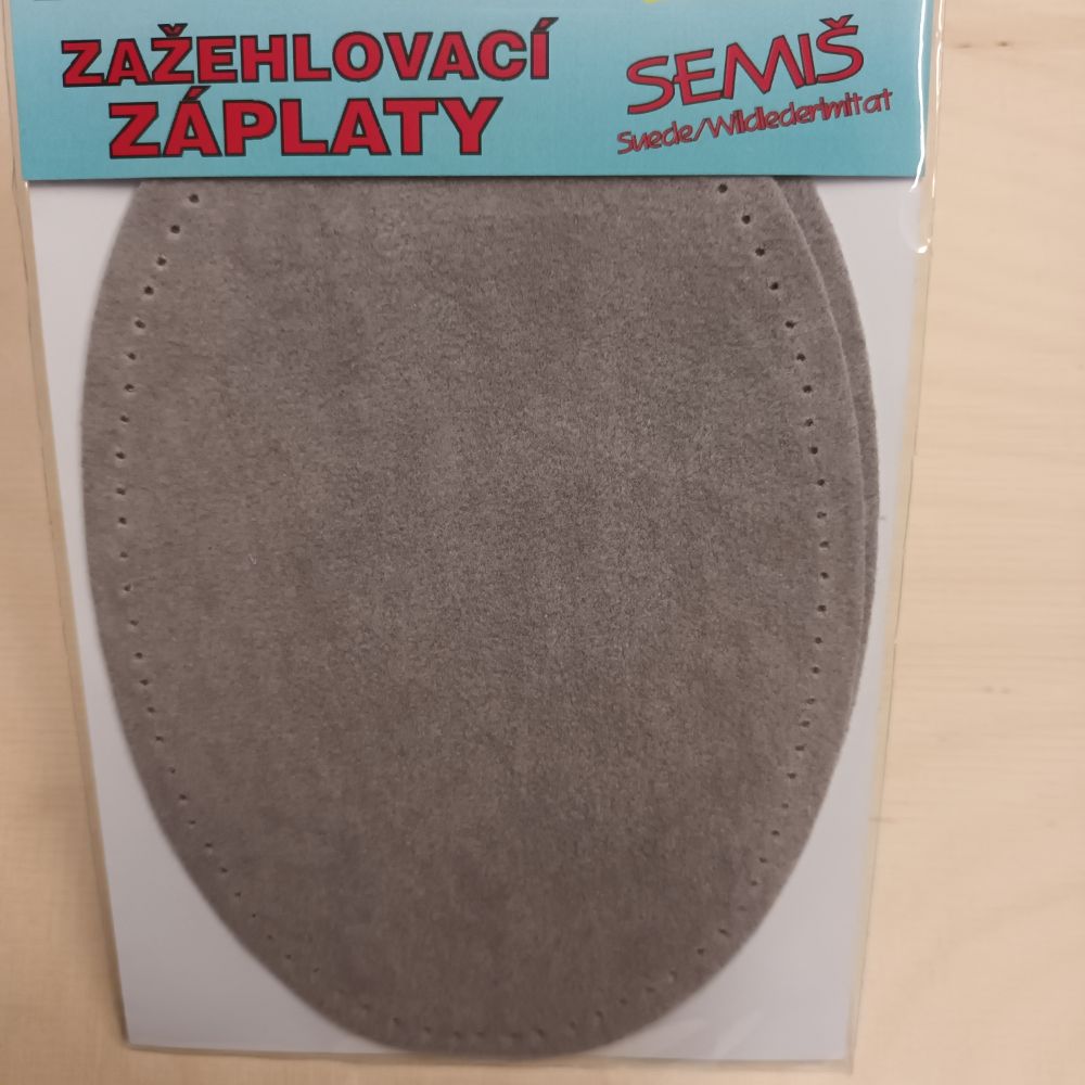 Triigitav ehk kuumkinnituv seemisnaha imitatsiooniga paik suurusega 9,5 x 14 cm.