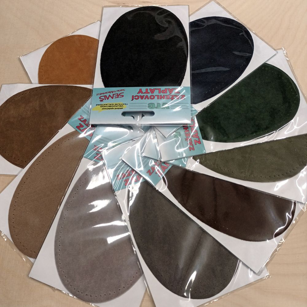 Triigitav ehk kuumkinnituv seemisnaha imitatsiooniga paik suurusega 9,5 x 14 cm.