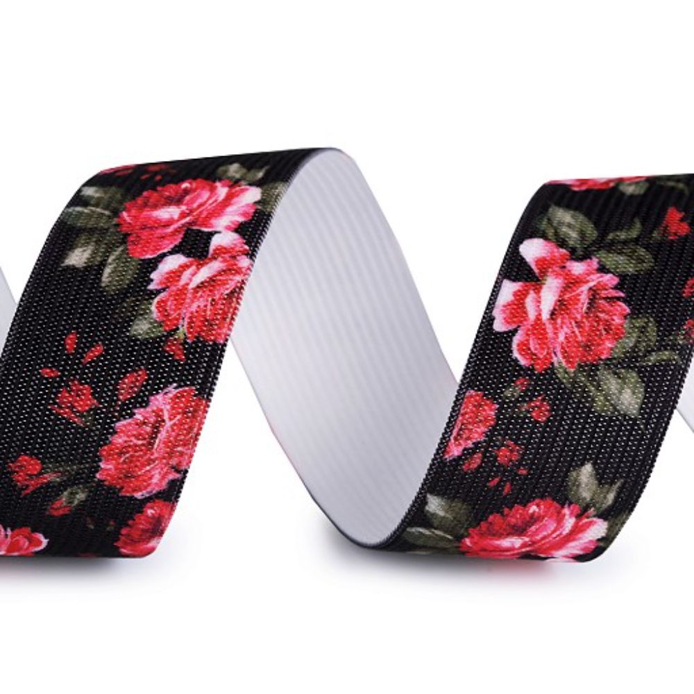 Effektne ja dekoratiivne kummipael imeilusate roosidega, mis paistab silma pükste, seelikute ja kleitide vöökohas ning aluspesu kummina.
