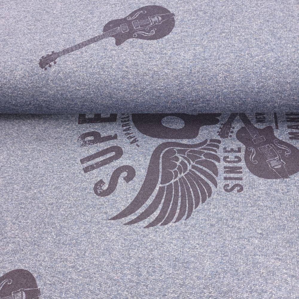 Kanga ühes servas on Rock and Roll tekstiga pildid, ülejäänud kangal on hajusalt kitarri pildid.