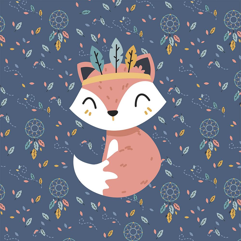 Dressikangast paneel, 40×50 cm, rebane unenäopüüdjatega, sinine