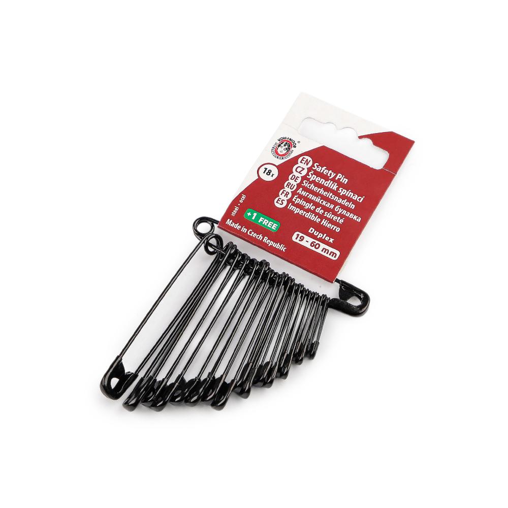 Haaknõelad, 18+1 tk, pikkused 19-60 mm, must