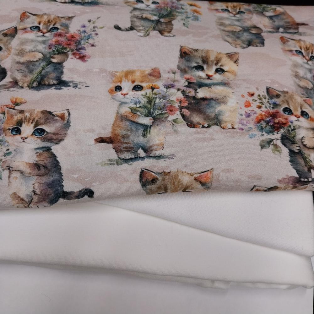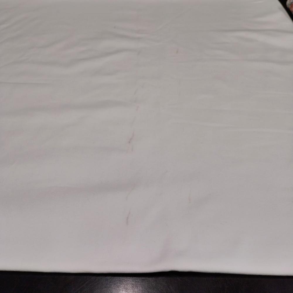 • loodusvalge trikotaaž – 1,25 m – piki kangast jookseb 45 cm ja 100 cm vahel heledate triipudega joon (ok osa on 125 cmx45 cm ja 125 cmx100 cm) – vt lisapilti