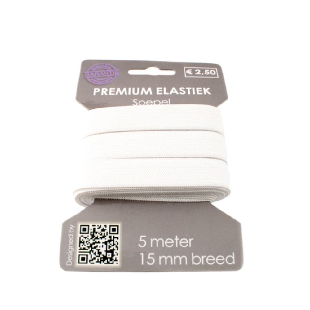 Pesukumm, valge, laius 15 mm, pakis 5 m.