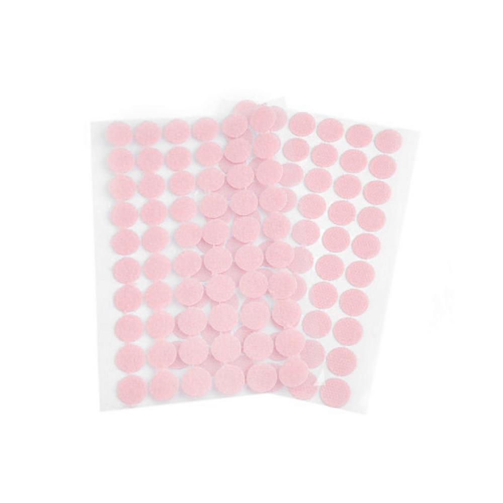 Liimitav takjakinnitus, ühe kinnituse läbimõõt on 15 mm, pakis on 60 kinnitust, mõlemad pooled on kangale liimitavad.