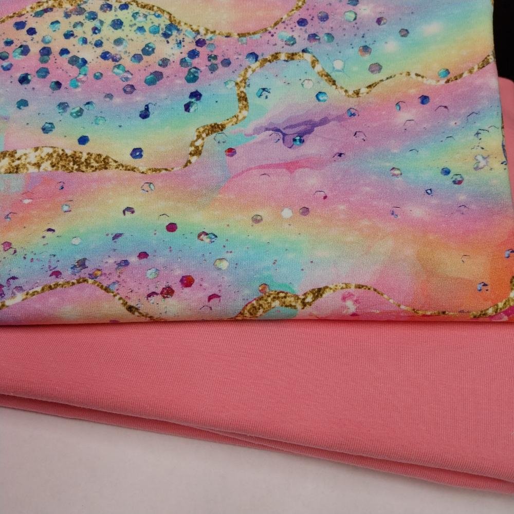 Marmormustriga roosa trikotaažikomplekt, 2,05 m