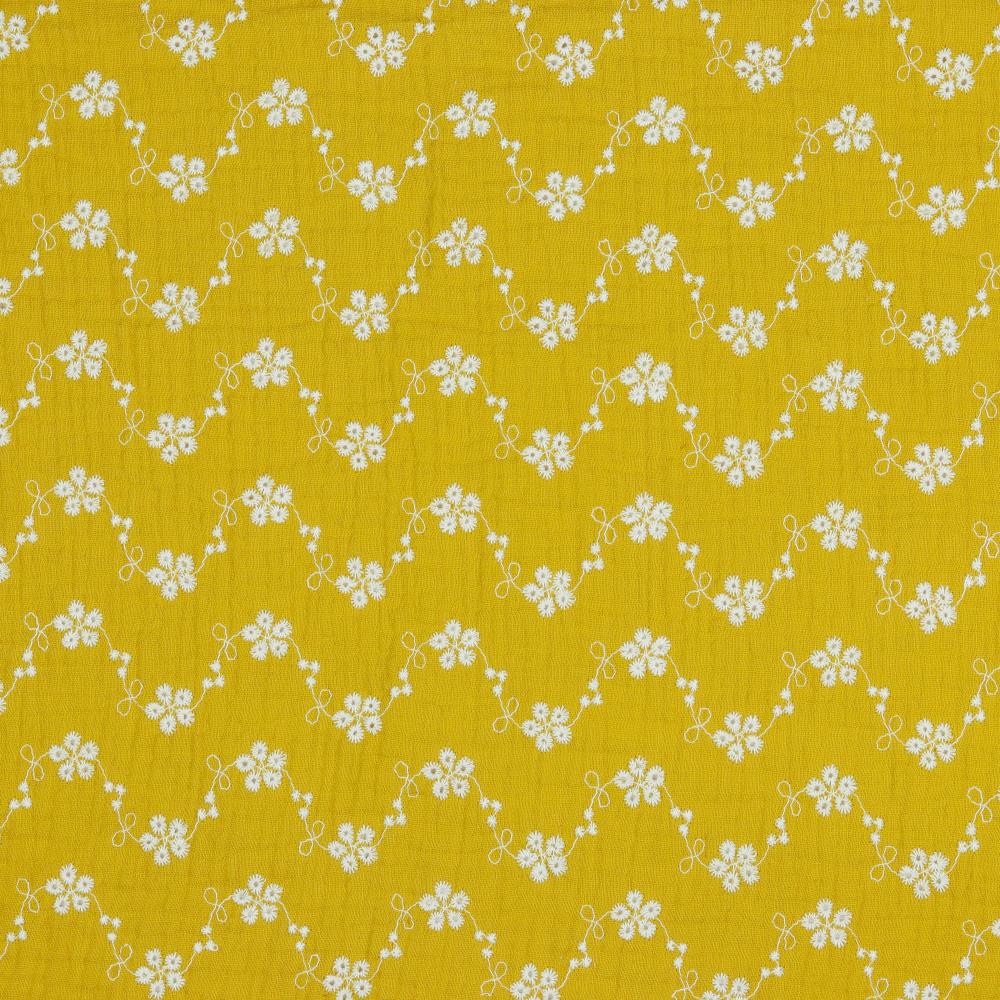 Musliin – 2-kihiline, tikitud lilledega, kollane