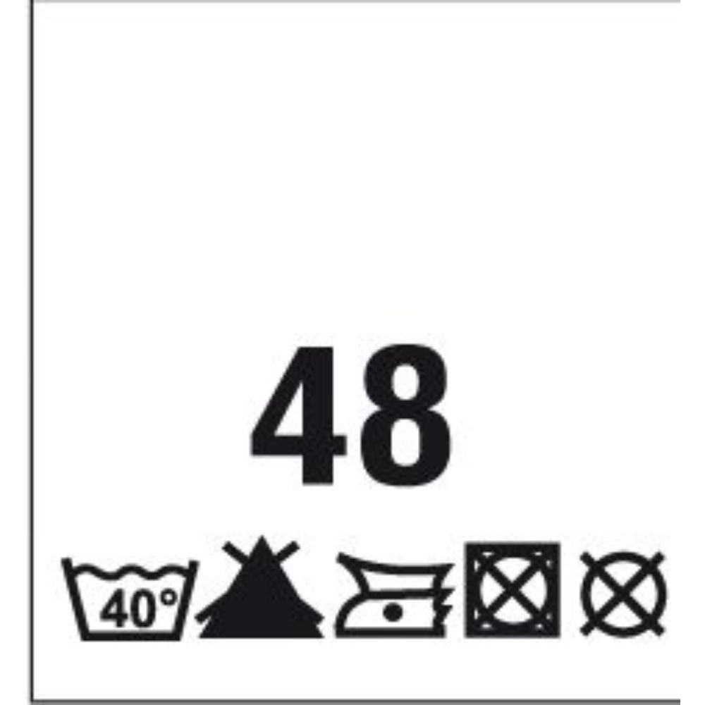 Õmmeldav suurusesilt hooldusjuhistega, 200 tk, suurus 48