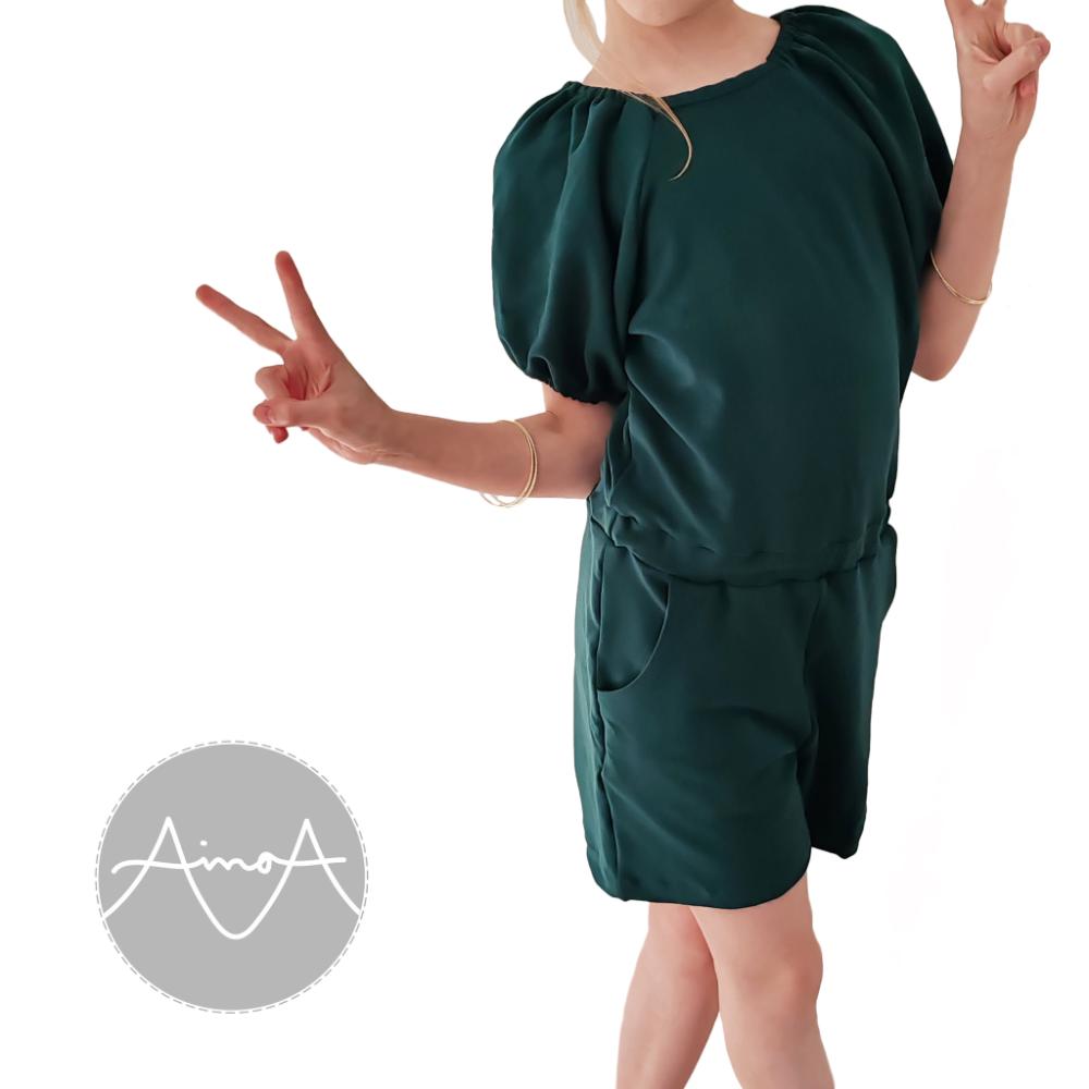 Romper on avara disainiga ning sellel on raglaanpuhvis varrukad ja taskud.