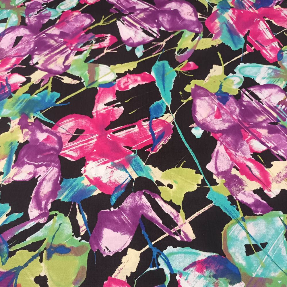 Puuvillapopliin, abstraktsed lilled mustal