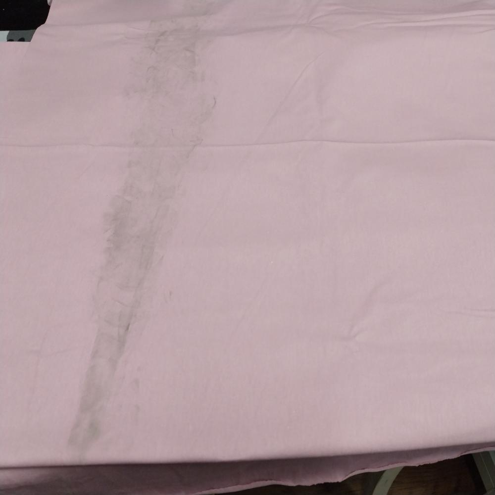 - vanaroosa trikotaaž – 0,70 m (0,5 m on ok, 0,2 m osal ühel osal kanga pahemal poolel määrdumine, paremale poolele kumab kergelt läbi);