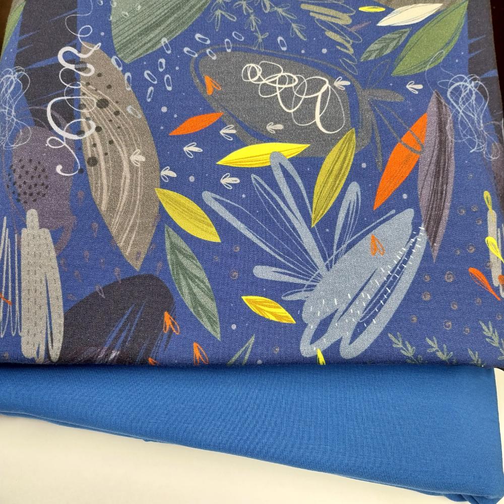 Sinine dressikomplekt abstraktsete lilledega, 3,3 m