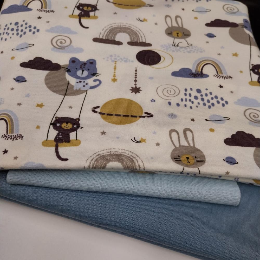 Sinine komplekt jäneste ja kassidega, (trikotaaž, soonik), 2,28 m