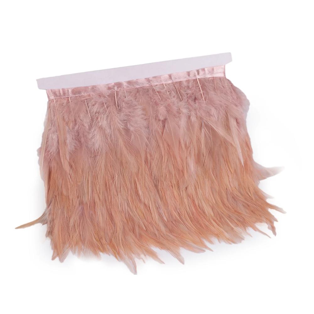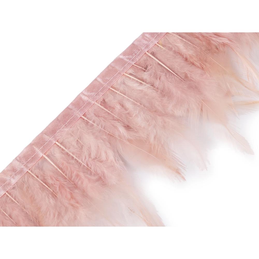 Sulgedega õmmeldav riba, puudriroosa, suled 7-11 cm, 10 m pakis