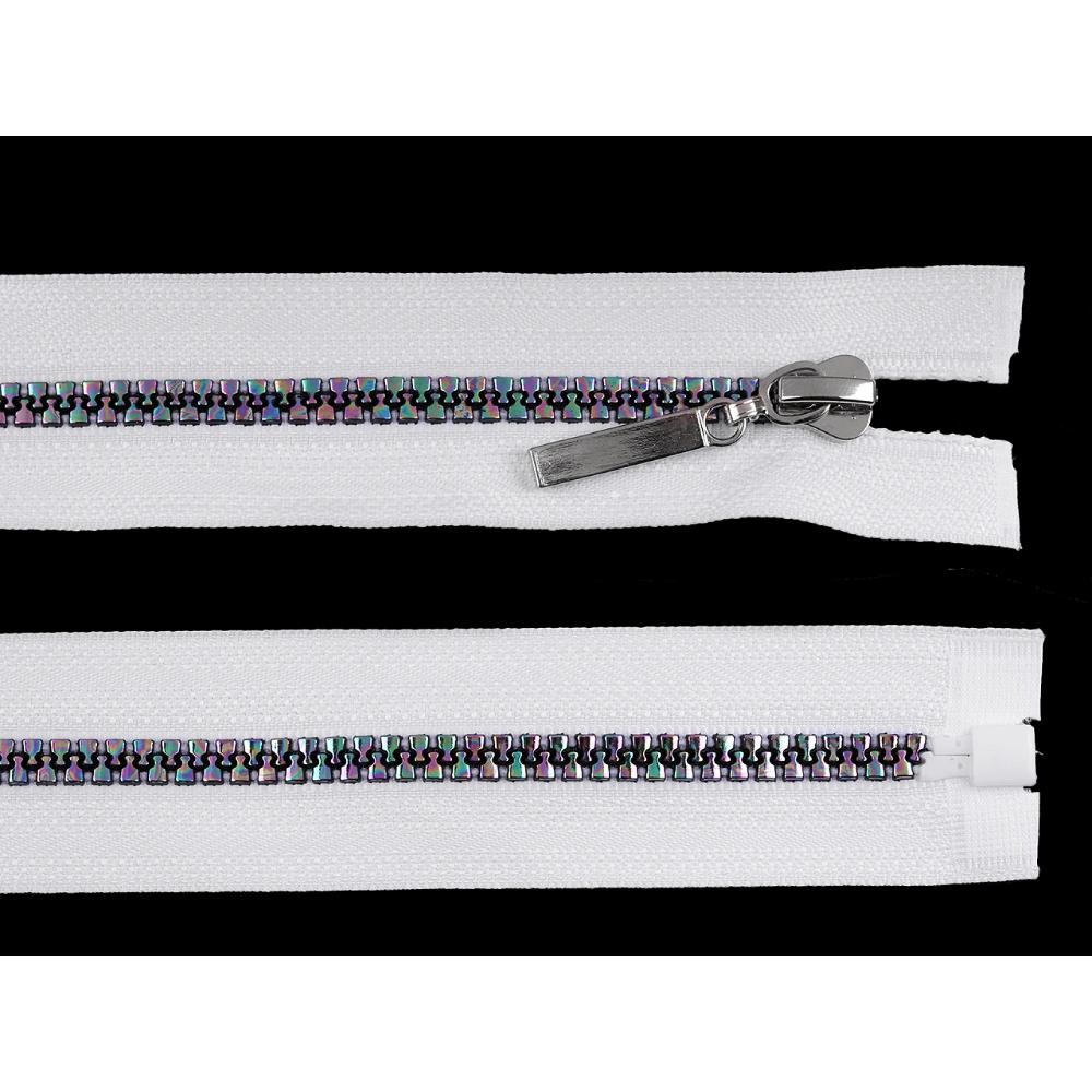 Traktorlukk, vikerkaarevärviliste hammastega, alt lahtikäiv, 5 mm, 80 cm, valge