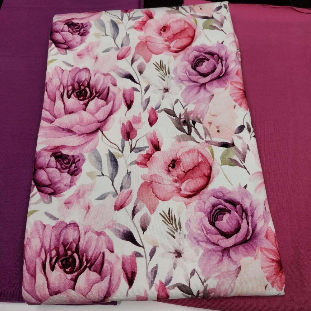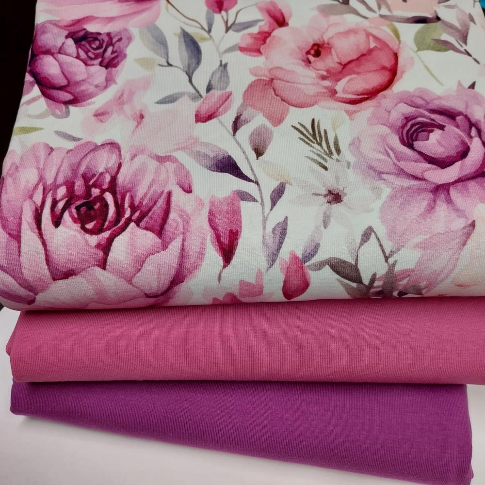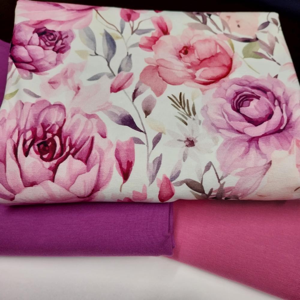 Trikotaažikomplekt suurte roosade lilledega, 2,92 m