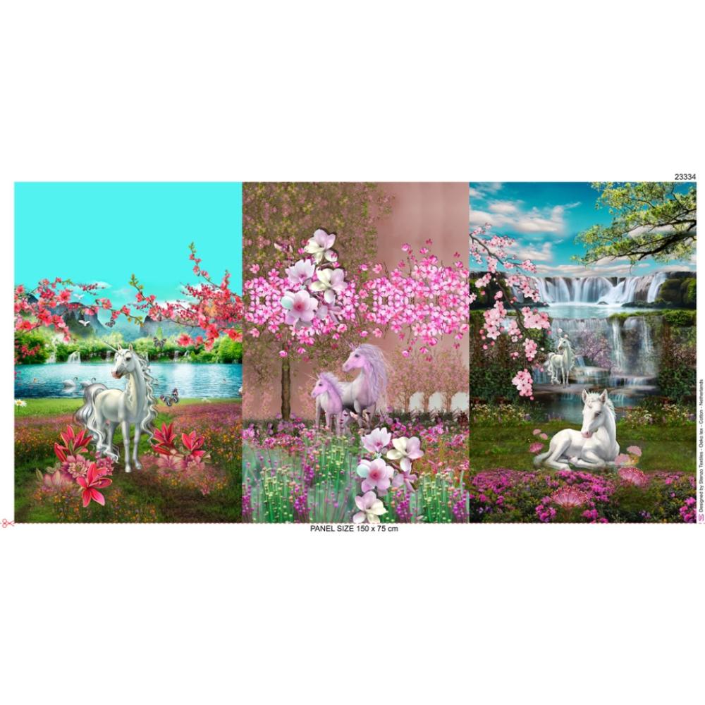 Trikotaažpaneelid 3tk – ükssarvikutega, 75×150 cm