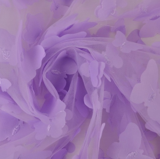 Tüll – 3D liblikatega, lavendlililla