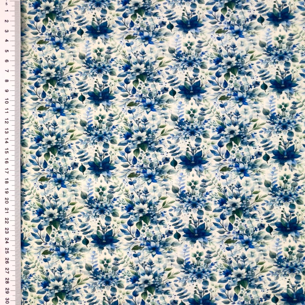 Viskoostrikotaaž – sinised väiksemad lilled